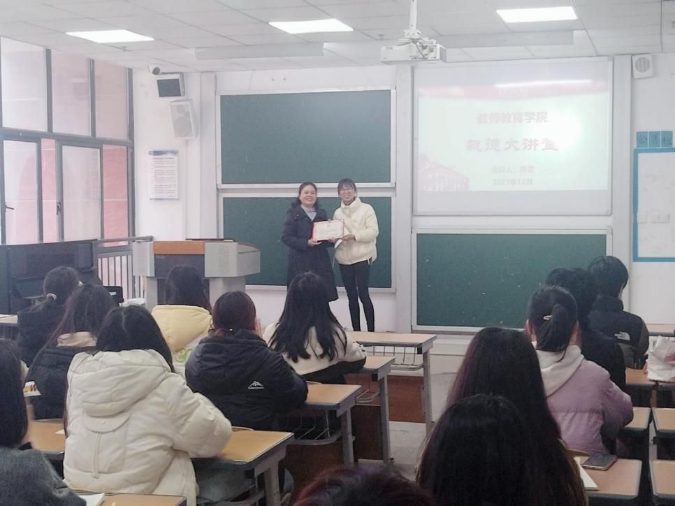 2023年12月1日,我院小学教育教研室邀请了小学教育专业优秀校友——冉莹老师为2022级小学教育2班学生作了题为“教师成长路径”的专题讲座。