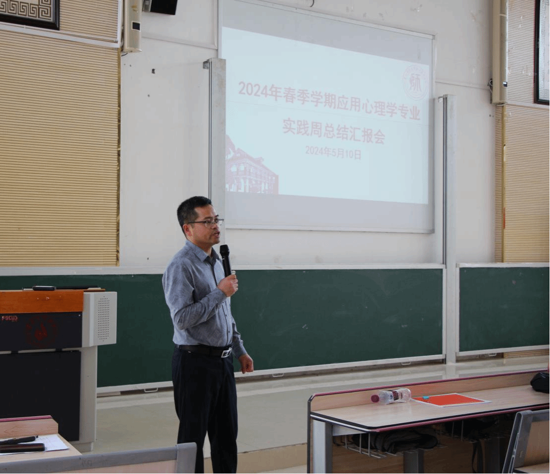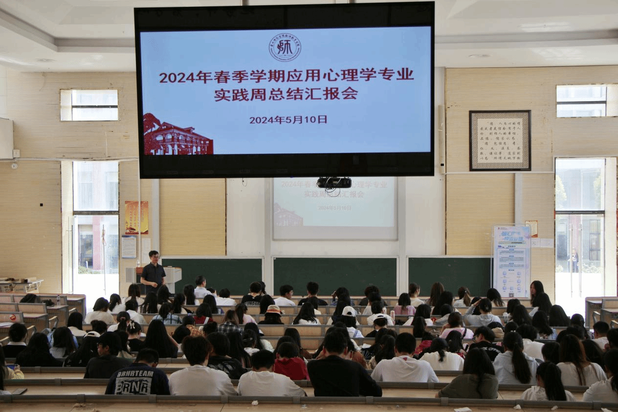 2024年5月10日下午,教师教育学院应用心理学专业实践教学周总结汇报会在执毓楼107举行。教师教育学院院长朱海、副院长李章琼、心理学教研室部分老师以及21级、22级、23级应用心理学专业的全体学生出席本次汇报会。