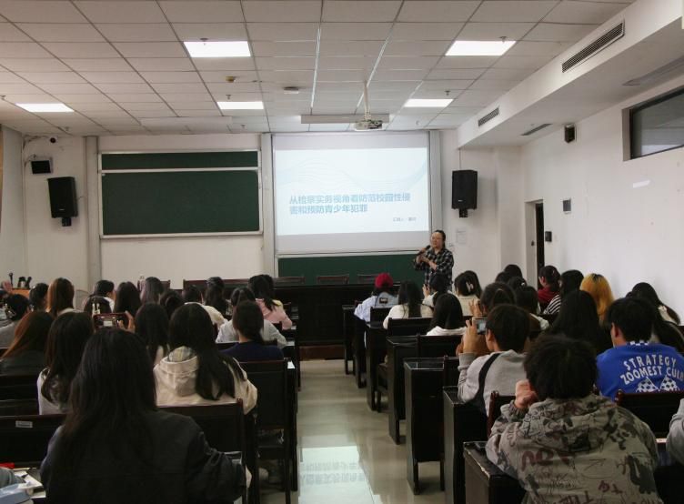 第一场,遵义市人民检察院案管办主任袁可为同学们开展了《从检察实务角度防范青少年儿童校园性侵害和预防青少年犯罪》专题讲座。袁主任通过结合具体案例,深入剖析了校园性侵害和青少年犯罪的特点、成因及防范措施。她强调防范校园性侵害和预防青少年犯罪需要全社会的共同努力,需要家庭、学校、社会等多方面的协同配合,她的讲座加深了同学们对校园性侵害和青少年犯罪问题的认识和理解,从而为大家将专业知识运用到实处有极大的启示意义。