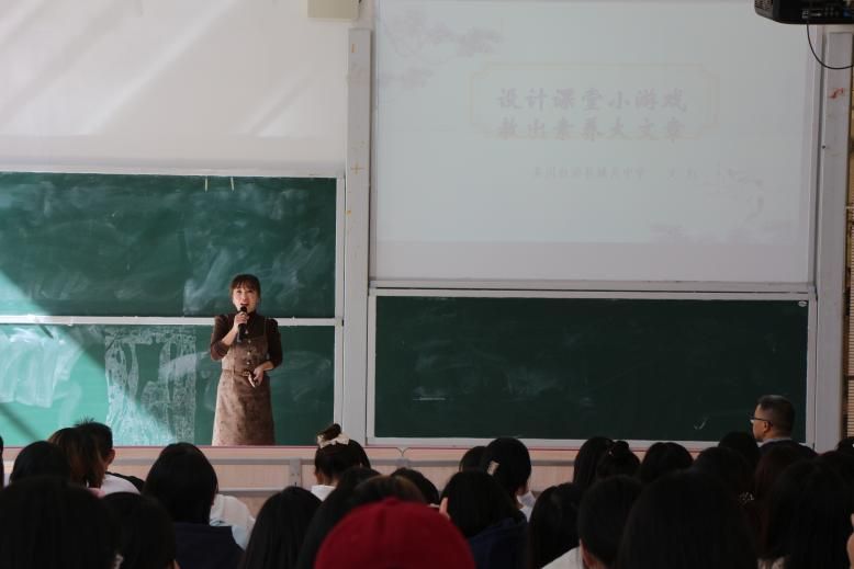 第二场,务川县城关中学文红老师带来了《设计课堂小游戏,教出素养大文章》专题讲座,讲座中,文老师凭借丰富多样的案例以及绘声绘色的讲解,清晰而有力地向我们阐述了课堂小游戏所蕴含的深远教育意义。她分别从小游戏设计的基本理念、基本策略、基本原则等方面为同学们讲解,同学们纷纷表示设计课堂小游戏在教育中扮演着重要的角色,它不仅能够提高学生的学习兴趣,还能促进对知识的理解和运用。