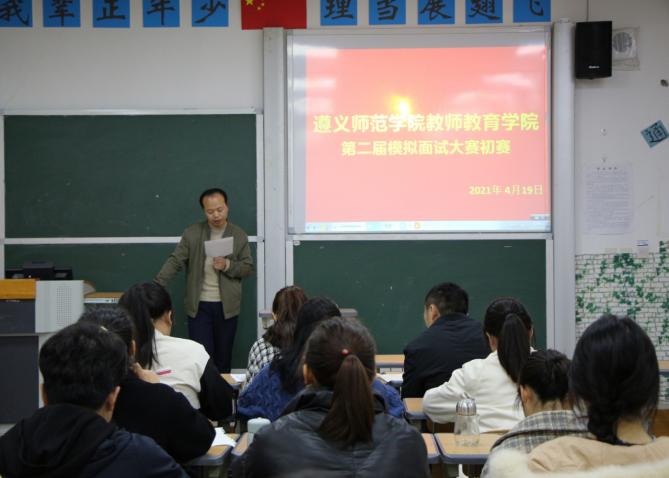 为了提高大学生的语言表达能力,锻炼其应急反应、独立思考能力,强化面试技能,为大学生进入社会打下良好的基础,教师教育学院于2021年4月19日晚在执毓楼105教室举行第二届模拟面试大赛。本次大赛由遵义市红花岗区自然资源局王国友及创意发明学院贵州执行院长杨云方主持,教师教育学院18级的同学们参加了本次比赛。
