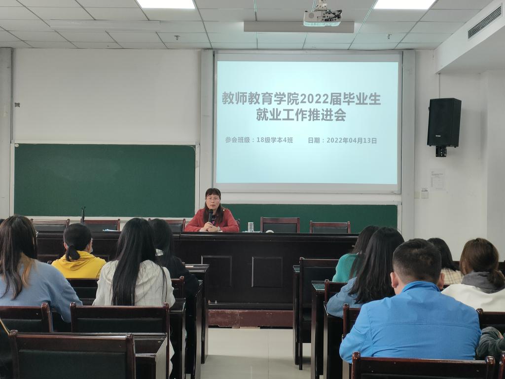 受疫情影响,2022届毕业生就业形势异常严峻。为保证毕业生就业工作正常稳步推进,给毕业生提供更加有效、精准、深层次的就业指导帮扶,教师教育学院于2022年4月13日全天在执毓楼103教室,分别针对8个毕业班逐一召开了2022届毕业生就业工作推进会。参加本次会议的人员有教师教育学院党委副书记李湘丽、学生科李梦尧老师以及2022届全体在校毕业生。