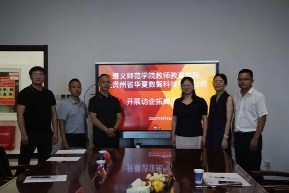 为深入探索产教融合新模式,促进毕业生高质量就业,2024年9月4日,教师教育学院书记王洪叶、朱海院长一行4人前往贵州省华夏数智科技有限公司开展访企拓岗专项行动。贵州省华夏数智科技有限公司总经理曾令国,副总经理刘秀福、周星成等公司高层管理人员参加座谈会。