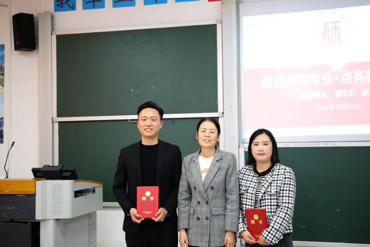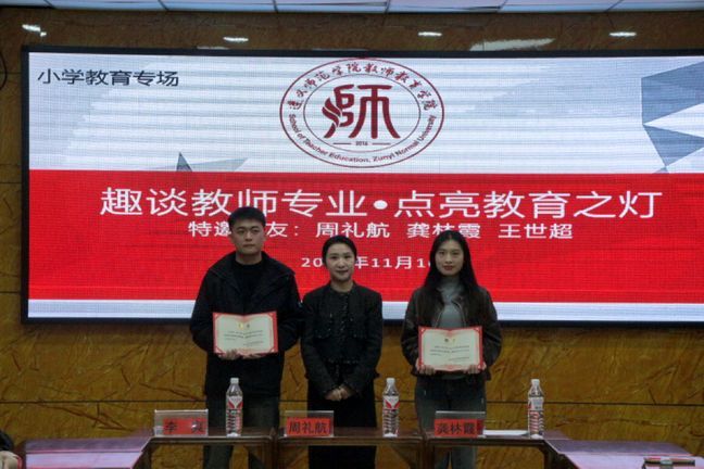 11月16日,我院在学生活动中心一楼大厅开展小学教育专业教师招考专场沙龙活动。2022届校友周礼航、2023 届校友王世超、2024 届校友龚林霞参与沙龙为在校生“职”点迷津,学生科科长李爽参加本次活动,此专场采取线上线下相结合的云端对话模式。三位校友分别介绍了他们在大学期间的学习规划、职业生涯规划、备考心得和求职经历,与同学们进行互动交流,答疑解惑,本场沙龙活动增强了小学教育专业学生对该专业就业方向的了解,为同学们提供了丰富的就业信息和实用的职业指导。