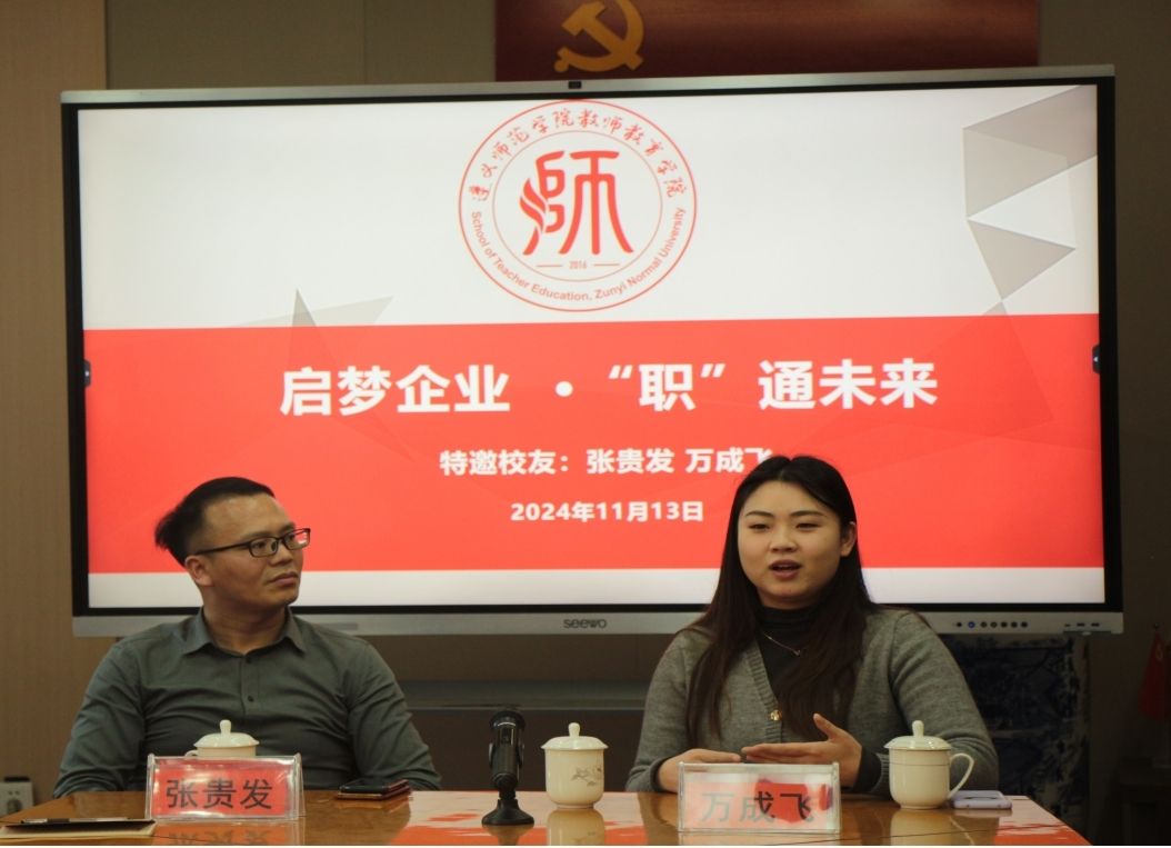 11月13日,我院在执毓楼319会议室开展企业就业专场沙龙活动。本场沙龙诚邀2011届校友张贵发、2021届校友万成飞莅临现场,院党委书记王洪叶、就业服务团副团长周玲涓参加本次活动。两位校友分享了自己的创业经历和求职经验,鼓励同学们勇于挑战自我,打破就业局限,尝试多元化发展,并对同学们的就业规划提出了建议。