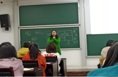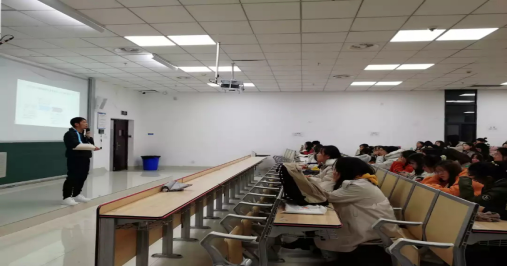 蒋主任首先讲述了自己在遵义市第一中学的工作经历,然后从认识危机、关注心理危机、了解心理危机干预策略三个方面带同学们了解一线心理老师的工作。并用一道图形题来激发同学们的兴趣,让学生在思考和讨论中深刻体会了助人自助的原则。她还结合自己教学工作中的具体事例,深入浅出地介绍了学校教学中学生常遇见的三种危机类型、危机发展的各个阶段的情绪感受和行为表现,以及人在面对危机时的反应。