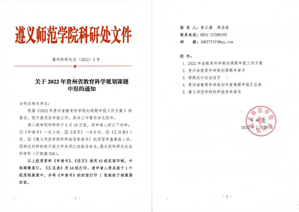 关于2022年贵州省教育科学规划课题申报的通知