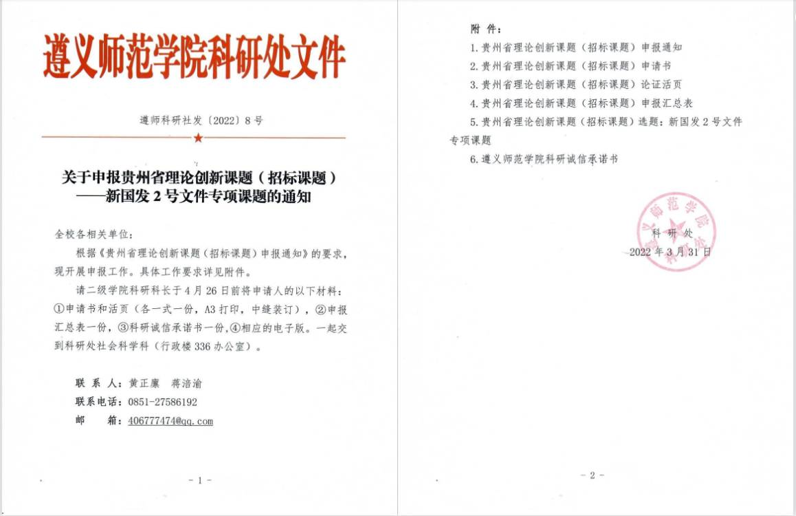 关于申报贵州省理论创新课题(招标课题)——新国发2号文件专项课题的通知