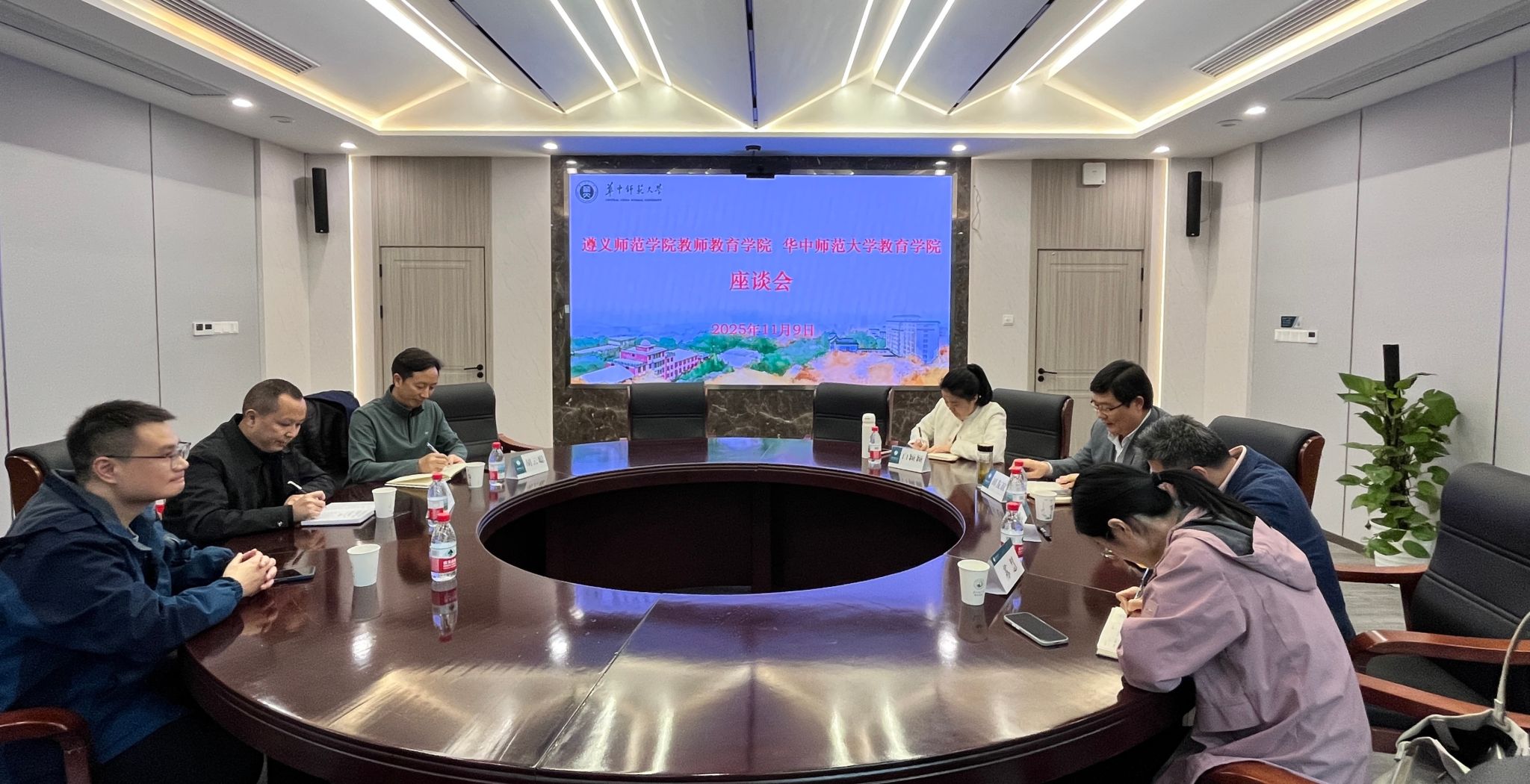 在与华中师范大学教育学院的交流座谈会上,田友谊副院长从历史脉络、学科特色、专业建设及师资队伍等方面介绍了学院概况,相关领导和老师汇报了各领域工作进展。周云副院长汇报了学院发展面临的瓶颈问题。双方重点围绕高质量党建、学科专业建设、师资队伍优化及教育硕士申报与建设等议题展开研讨,教育学院副院长郑刚和与会专家对教师教育学院的相关工作逐一进行了指导。双方达成一致意见,将在前期师范教育协同提质计划基础上,进一步拓展合作领域,通过多形式互动实现共同发展。