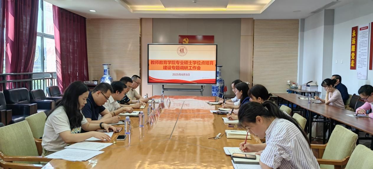 为加快推进专业硕士学位点培育建设工作,2025年6月5日,肖仲久副校长率相关职能部门负责人教师教育学院开展专题调研工作会会议在执毓楼319召开,由教师教育学院党委书记王洪叶主持学院领导班子及申硕工作小组成员参会
