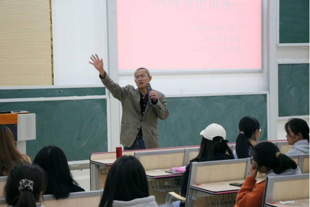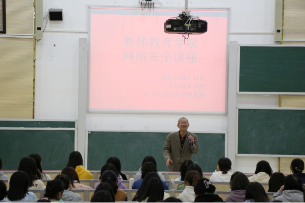 为强化大学生安全意识,谨防网络诈骗,教师教育学院于2021年10月17日下午在执毓楼107教室开展了大学生网络安全教育讲座,由微信买球官方网站保卫处副处长邹陈主讲。