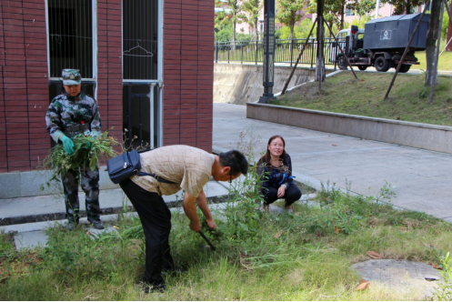 首先,全体新生统一在西区运动场集合。随后,各个连队由教官带队领取劳动工具后前往到指定区域。教师教育学院240名新同学在教官的带领下主动学习了如何使用劳动工具后,积极踊跃的到自己的劳动区域——东区食堂、东区宿舍楼周围的绿化区域进行除杂草、清捡白色垃圾等劳动。劳动期间,我院党委副书记李湘丽,新生班主任和教官一直陪同参与劳动,随时提醒学生劳动中要注意安全。