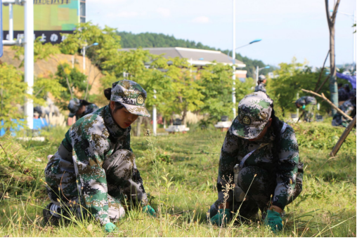 我院学子不怕困难,迎难而上,顶着炎炎烈日辛勤除草,他们服从指挥,认真学习,将军人的秉性融入到劳动人民的日常之中,成了劳动场上一道不可多得的风景。新生们不仅学会了使用劳动工具,体会到劳动人民的辛苦,也在辛勤劳作的同时发现了乐趣——他们在草地上意外发现了“小西瓜”,这让他们喜出望外,彼此交流着自己的喜悦,让除草劳动浸出了一丝丝甜意。