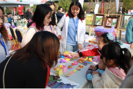 在活动现场,教师教育学院展示了各式各样由我院同学制作的手工作品。有简洁大方、极具特色的红色剪纸,有清新秀丽、赏心悦目的手工花卉,有精巧别致,趣味十足的粘土作品……别具一格的手工作品吸引了众多路人驻足观看、拍照留念。其中,展出的粘土作品深受小朋友们的青睐与喜爱,同学们热情的邀请小朋友们共同制作粘土作品,现场秩序井然、气氛热烈。