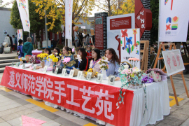 2020年11月7日,“新新市集”的大型展销活动在遵义市淅蒲中轴线公园举行。为丰富市场物品,提升物品质量,开市期间微信买球官方网站以及辖区大中专院校开展联动,在集市设置区域内不定期开展文艺表演以及书法、绘画等展示活动。教师教育学院手工作品(剪纸作品)受邀参与本次活动,教师教育学院手工艺苑承担了本次活动具体工作任务。