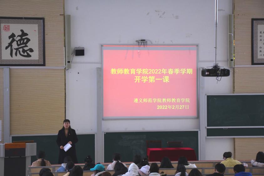春归万物生,策马踏新程。为提高我院学生的防护意识及安全意识,保障身心健康和财产安全,更好地开展新学期的学习与工作,2022年2月27日上午10点,教师教育学院党委副书记李湘丽在执毓楼107教室为大家讲授了2022年春季学期开学第一课,教师教育学院各班班长、寝室长及学生干部参加了本次学习活动。