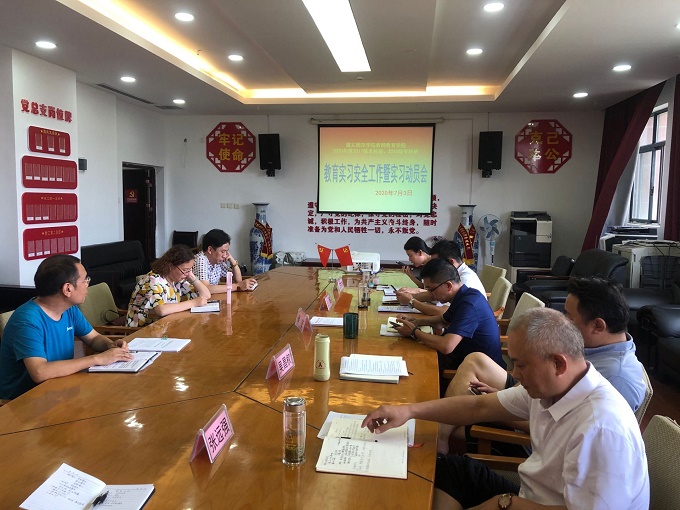 2020年7月3日下午,教师教育学院在执毓楼319举行了实习动员大会(腾讯会议,线上+线下结合)。学院党总支书记秦进,副书记、院长朱海,副书记吴昌权,副院长王文乔、张远强,教学科、学生科和职业技能教研室负责人,2017级本科班、2018级专科班班主任和班团干代表参加会议。会议由副院长王文乔主持。