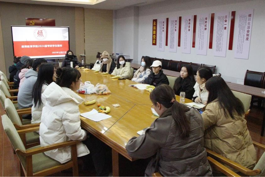 教师教育学院于2023年12月21日在执毓楼319会议室开展2024届考研学生慰问活动。教师教育学院党委书记王洪叶、党委副书记李湘丽、副院长李章琼、学生科副科长李爽以及部分2024届考研学生参加此次活动。