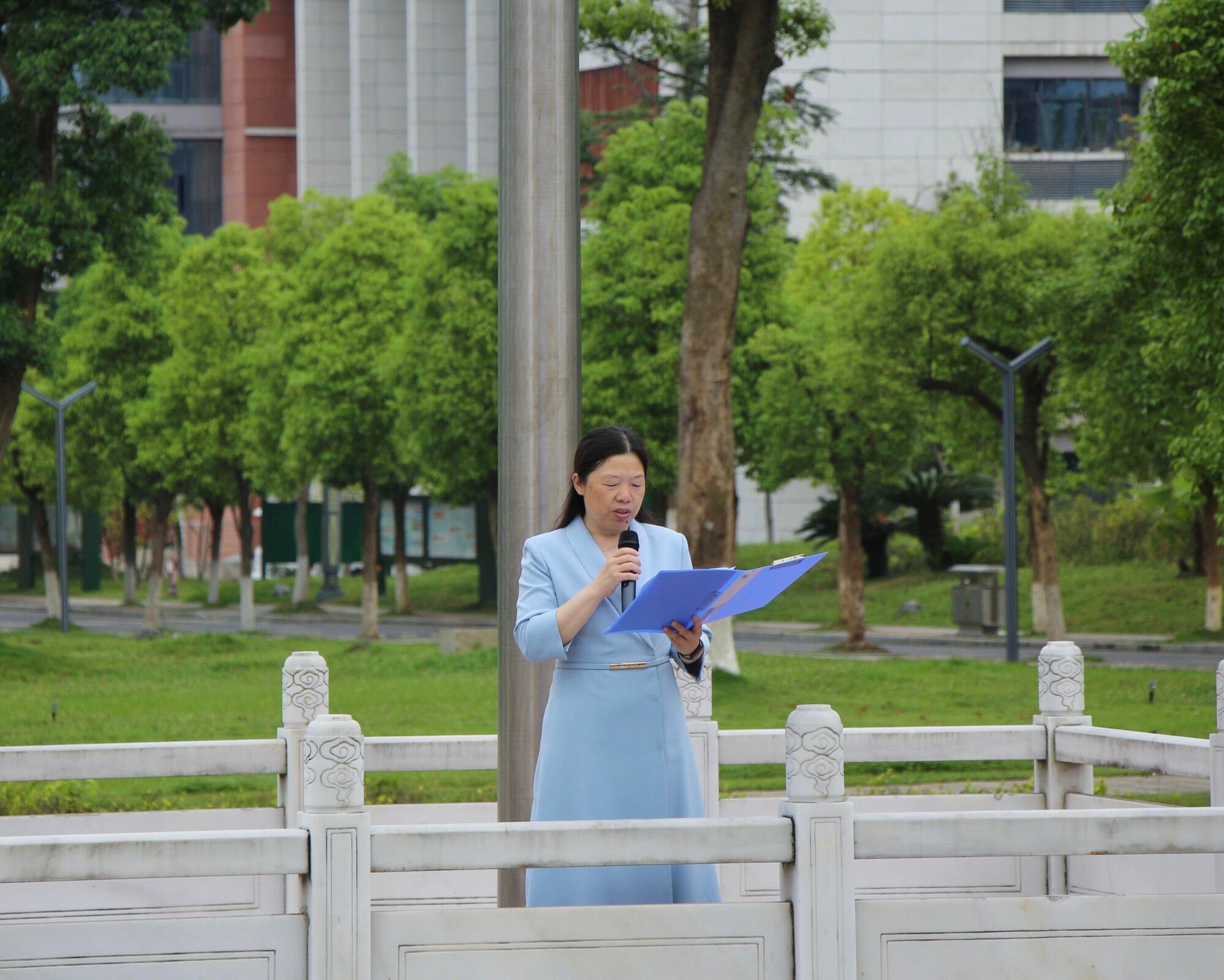 国旗下,李章琼副院长为全体师生上了一堂题为《持之以恒,逐梦未来》的思政课。紧接着教师教育学院红色宣讲团为大家带来了诗朗诵《中国红》。最后升旗仪式在全体师生深情齐唱《我和我的祖国》中圆满结束升旗仪式。