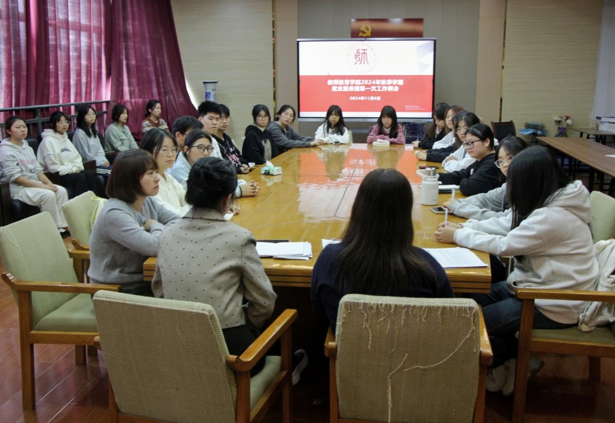 为更好开展我院就业工作,促进就业服务团稳健发展,教师教育学院就业服务团于2024年11月6日中午在执毓楼319会议室召开了就业服务团第一次工作例会。教师教育学院党委书记王洪叶,就业服务团团长李爽,副团长周玲涓以及就业服务团全体成员参加了此次会议,会议由团长李爽主持。