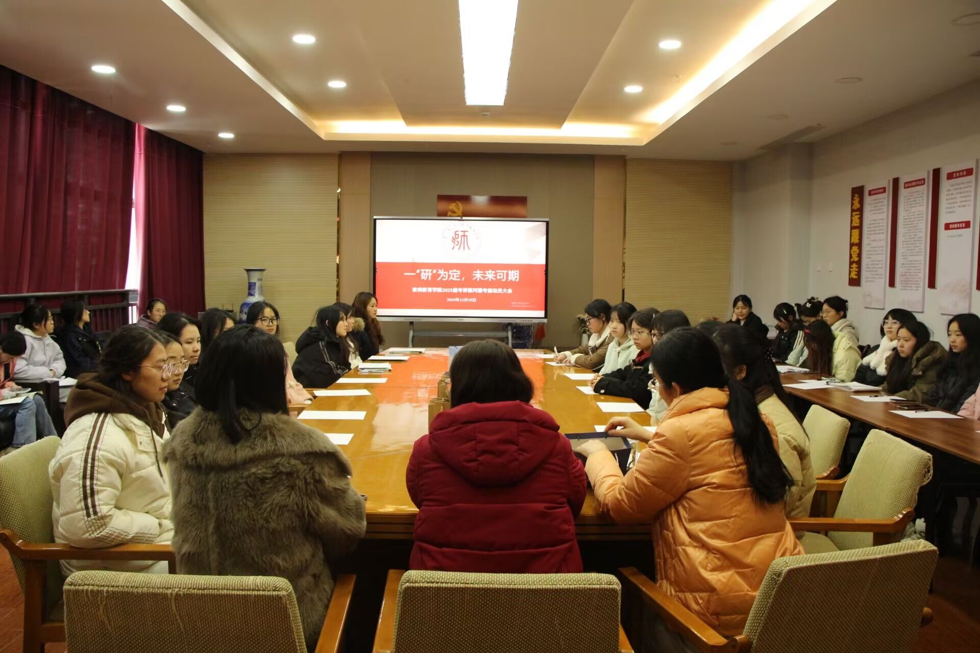 为坚定考研学生的信心,缓解备考压力,激发前进动力,教师教育学院于2024年12月19日下午在执毓楼319会议室举办2025届考研学生慰问暨考前动员大会。教师教育学院党委书记王洪叶、王文乔教授、学生科科长李爽及2025届考研学子参加此次会议,会议由李爽科长主持。