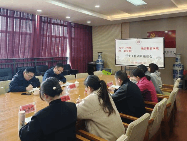 会上,我院就学生工作开展情况、存在的困难及下一步工作打算等方面作了汇报。调研组围绕学生管理、心理健康、征兵入伍及国防教育等工作,与我院教师进行了深入讨论和充分交流,听取了大家关于工作的意见建议。张家臣指出,学工部(处、武装部)将认真梳理汇总各方意见建议,进一步优化和改进相关工作策略,提高学生教育、管理、服务工作的质量和水平。