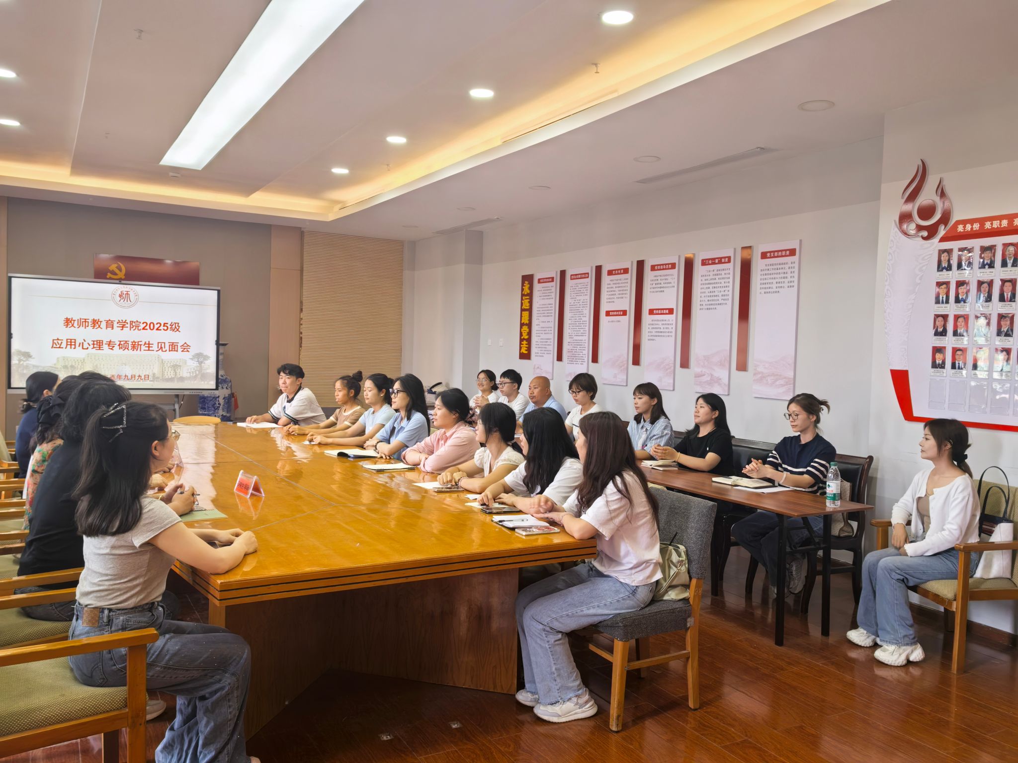 9月9日,新生入学教育暨科研讲座在执毓楼319举行。学院党委书记王洪叶、党委副书记李章琼、副院长周云胡云聪、侯慧庆全体硕士生导师及2025级应用心理硕士研究生参加。