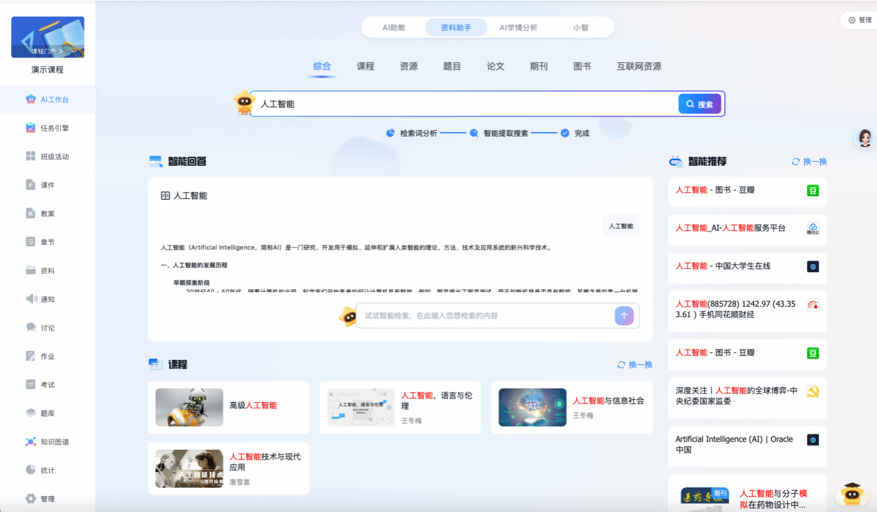专属“一课一助教,一课一智库”的AI助教接入DeepSeek大模型,将DeepSeek大模型深度思考与联网搜索能力与课程专属知识库相结合,赋能助教深度剖析问题,推演步骤,为师生提供更具针对性、启发性的解答,让智能答疑更具智慧洞察。
