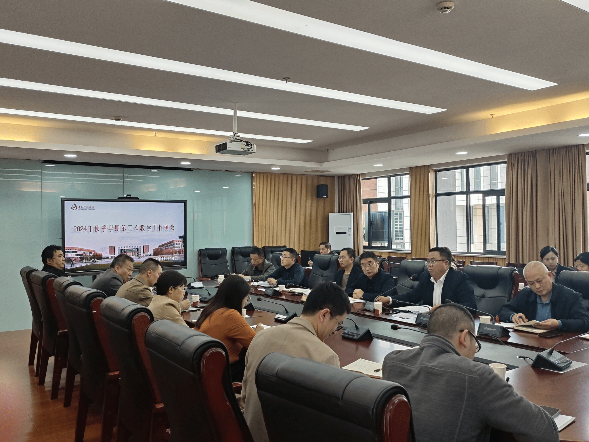 2024年秋季学期第三次教学工作会于11月14日下午14:00在行政楼418会议室召开。副校长张鹏、教务处、教学质量监测与评估办公室部门负责人、各二级学院分管教学副院长参加会议。教务处处长吴波主持会议。
