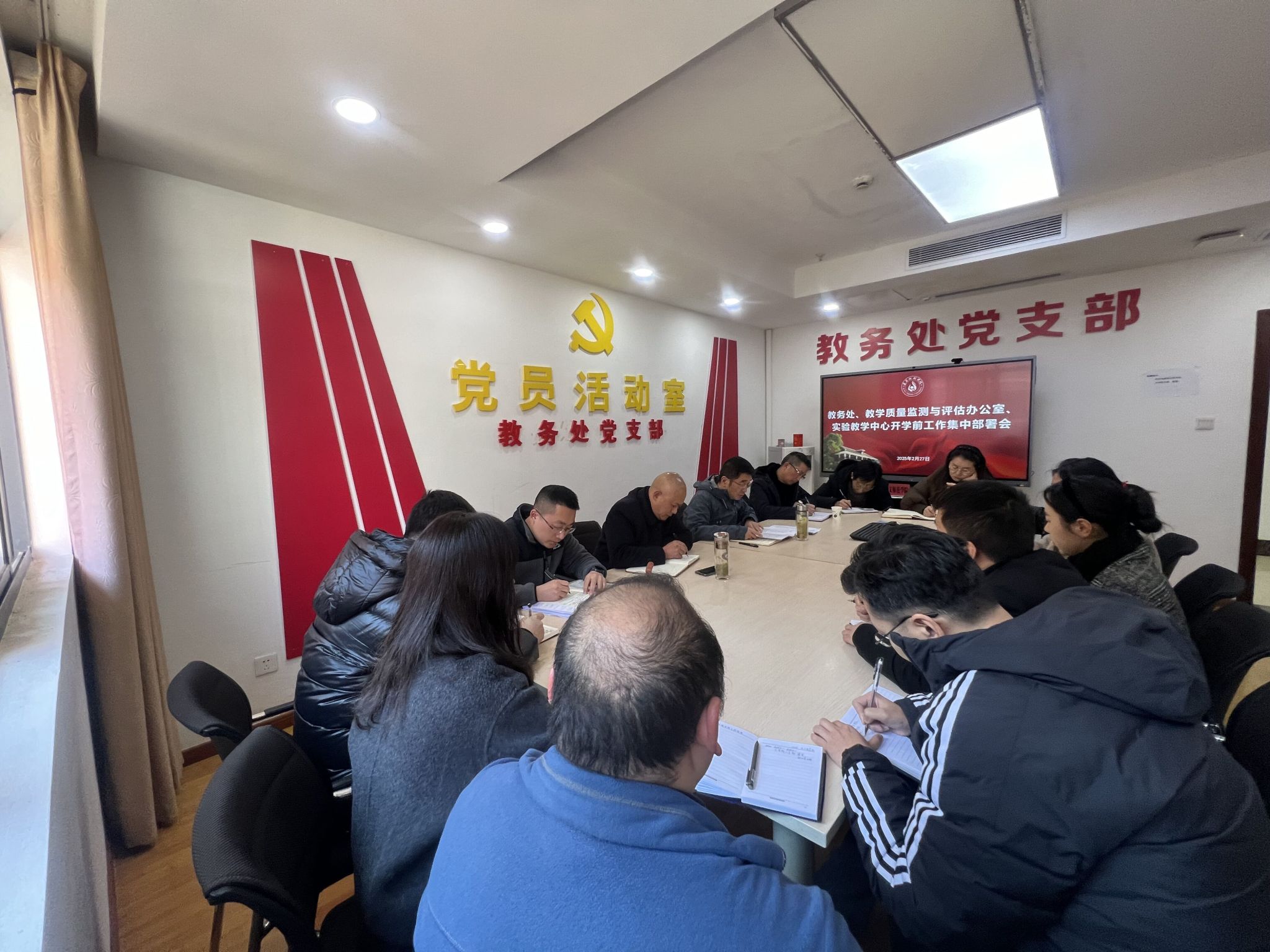2025年2月27日,学校教务处、教学质量监测与评估办公室、实验教学中心在227办会议室召开开学前工作部署会,会议由副校长张鹏主持,三部门全体人员参会。会议围绕新学期教学管理、质量评估、实验室安全等重点工作进行部署,为教育教学工作顺利开展奠定基础。