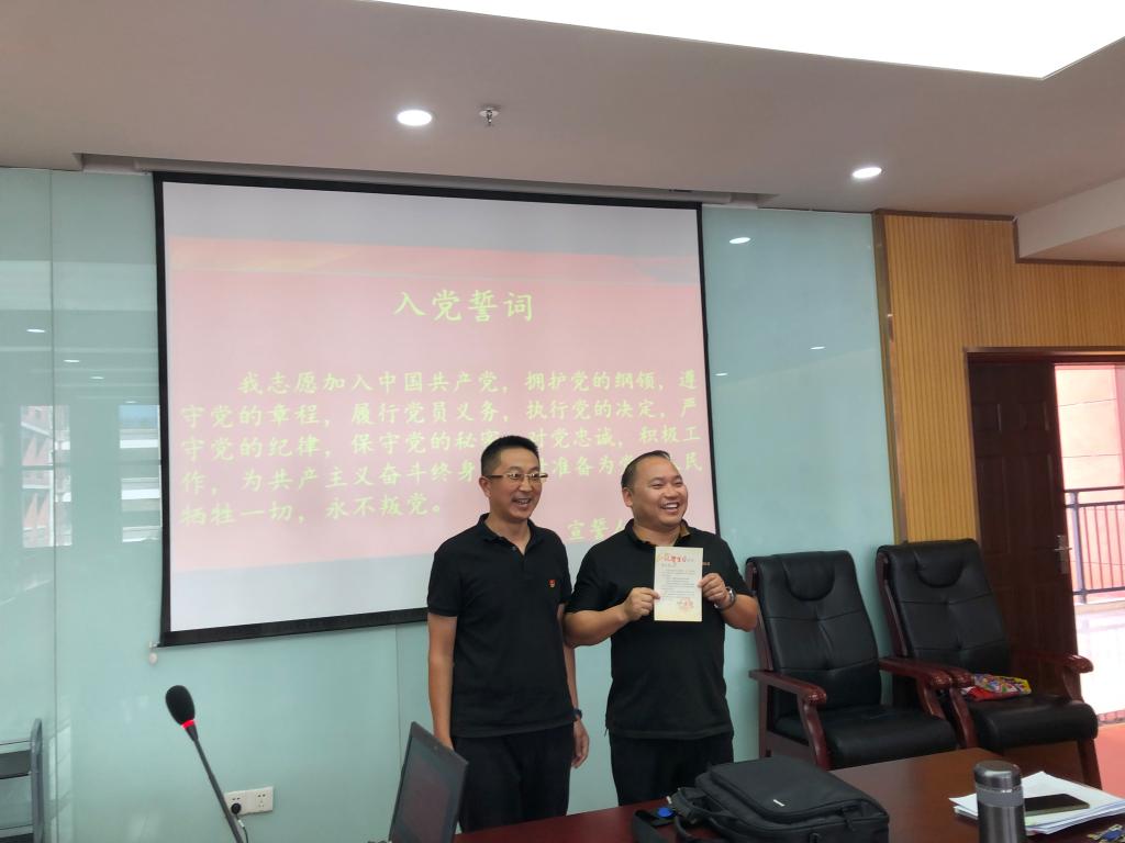 会议第二阶段,教务处党支部组织开展党员“政治生日”活动,党支部副书记秦进主持。过“政治生日”的党员黄志刚同志分享了他的入党经历。教务处党支部副书记秦进亲自将“政治生日”贺卡送到黄志刚同志手中。参会的全体党员面对党旗重温入党誓词;参会的党员同志齐唱红色歌曲《没有共产党就没有新中国》。主题党日活动在完成所有任务、议程后圆满结束。