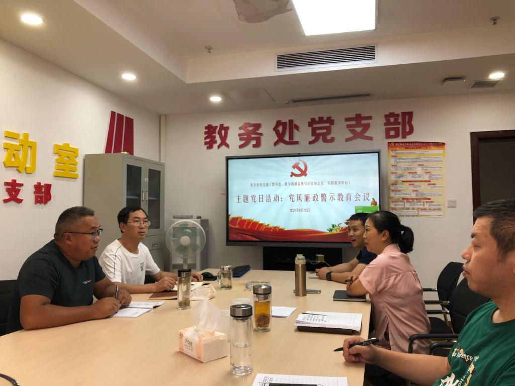 为深入推进落实全面从严治党的各项要求,有效发挥警示教育震慑作用,进一步强化党员干部职工的纪律意识和廉洁意识,提高拒腐防变能力,根据学校党史办工作要求,8月25日14:00,教务处党支部在行政楼227会议室召开2021年党风廉政警示教育主题党日会议。