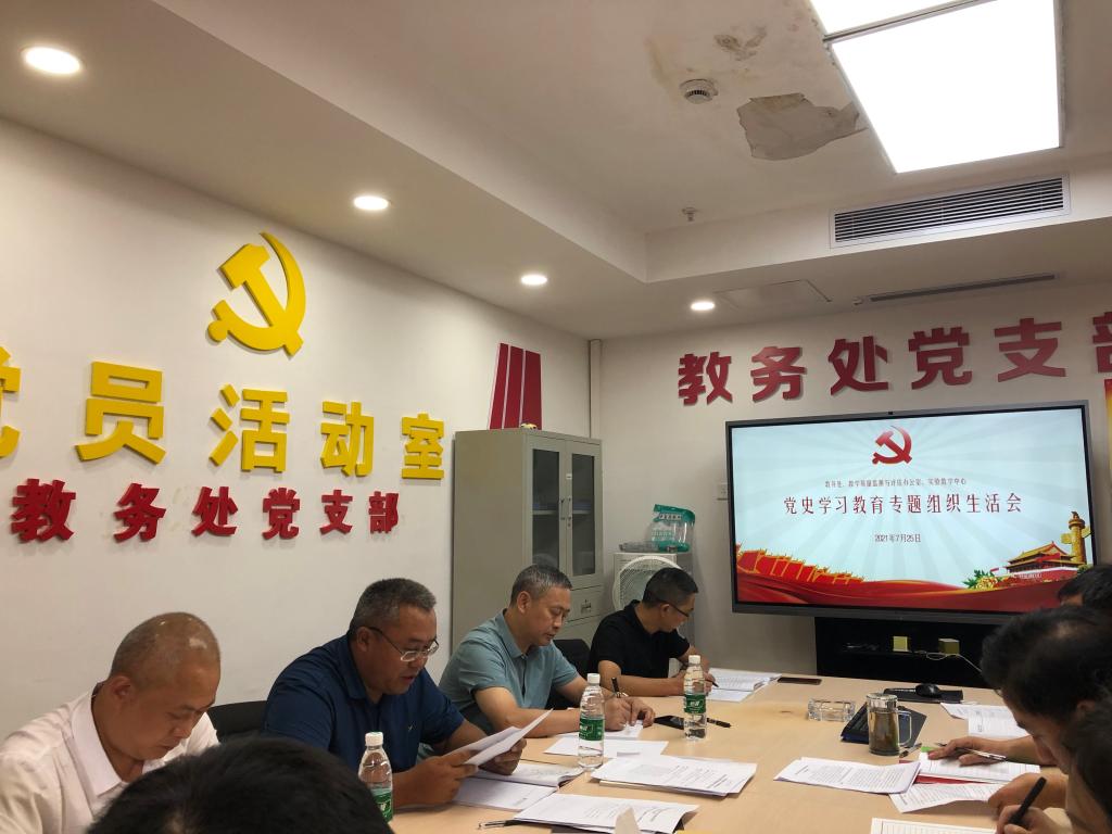 为贯彻落实校党委党史学习教育领导小组的工作要求,2021725830-1700,教务处党支部在行政楼227会议室召开2021年党史学习教育专题组织生活会。会议由教务处党支部书记、教务处处长吴波同志主持,教务处、教学质量监测与评估办公室、实验教学中心全体党员同志参加会议,校领导雷昌蛟同志以普通党员身份参加会议。