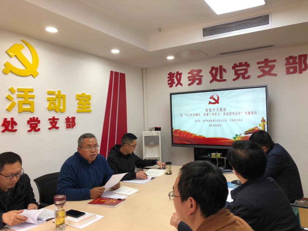 根据学校党史学习教育领导小组工作办公室的工作要求,2021年4月26日,教务处党支部在行政楼227会议室召开党史学习教育暨“牢记殷切嘱托、忠诚干净担当、喜迎建党百年”专题教育会议。