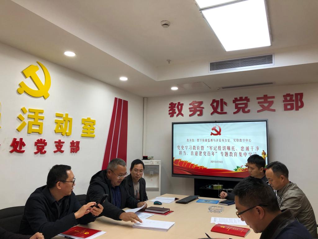 会议最后,教务处党支部组织委员、教务处副处长陈华仕同志通报4月13日校党委党史学习教育工作推进会的精神,并就下阶段党史学习教育、“牢记殷切嘱托、忠诚干净担当、喜迎建党百年”专题教育工作进行具体部署。