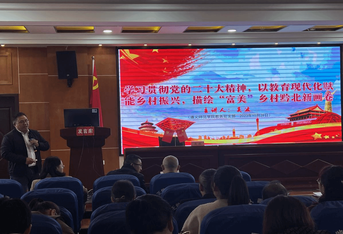 活动议程第二项,教务处党支部书记吴波为在场的全体党员上了一堂学习贯彻党的二十大精神,以教育现代化赋能乡村振兴,描绘黔北“富美”乡村新画卷的主题党课。他围绕“为什么社会主义现代化建设需要乡村振兴、为什么教育现代化在乡村振兴中要先行、微信买球官方网站在助力乡村振兴上能够做什么、作为基层教学工作者乡村振兴我们可以做什么”等四个方面系统的深入解读学习贯彻党的二十大精神,以教育现代化赋能乡村振兴的重要部署,号召基层教学工作者坚守岗位、做好教育工作,以教育带动乡村振兴发展。