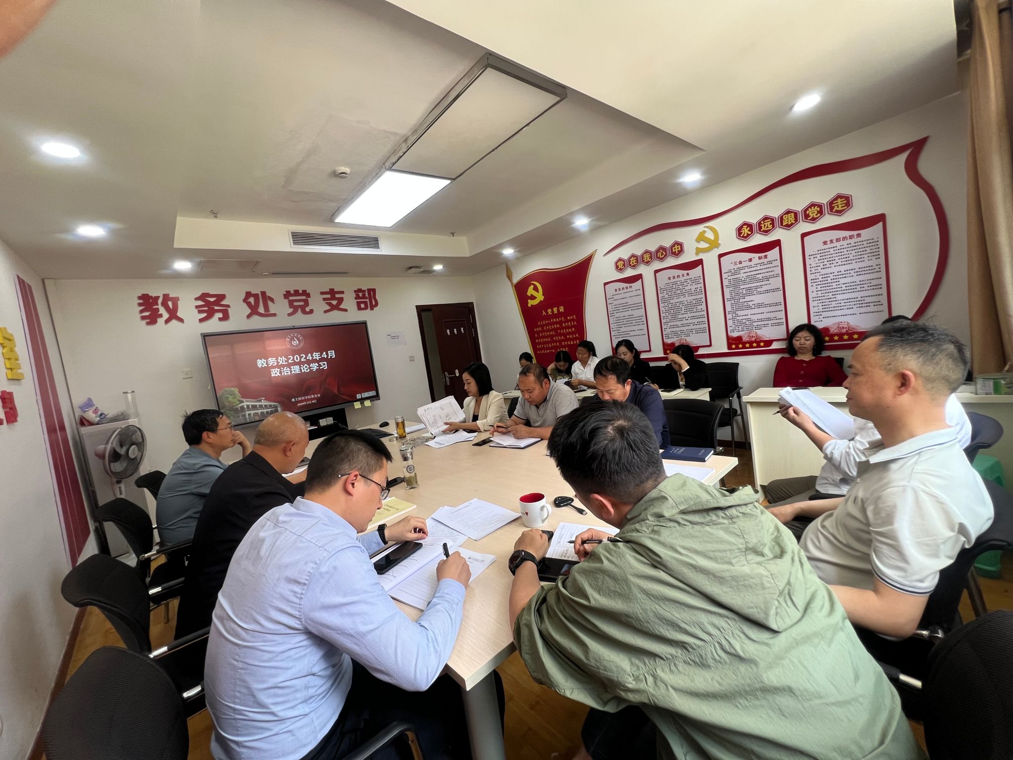 2024年4月19日下午,教务处党支部在行政楼227会议室开展四月政治理论学习,党纪学习教育暨主题党日活动,教务处党支部副书记张远强主持活动。会议分三个阶段进行,第一阶段教务处党支部(教务处、教学质量监测与评估办公室)全体教职工参加,第二、三阶段教务处党支部全体党员参加。