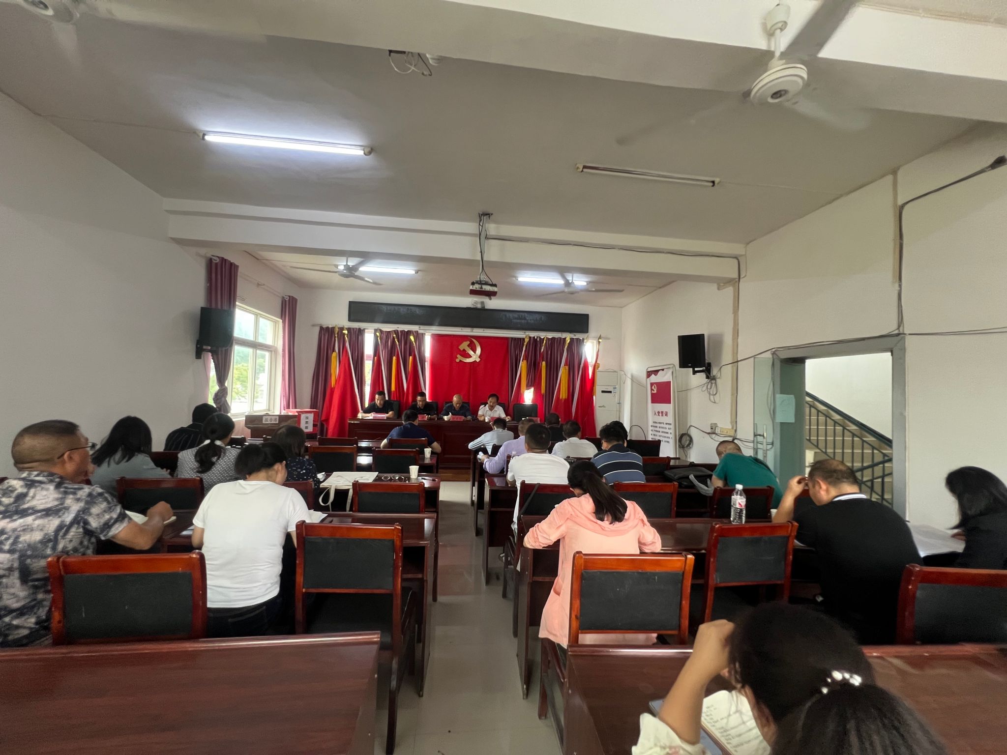 活动伊始,全体党员开展了“第一议题”学习。由张远强、秦进、刘世友三位同志分别领学,带领大家深入学习了习近平总书记在庆祝中华人民共和国成立76周年招待会上的重要讲话精神、习近平总书记给全国特岗教师代表的重要回信精神以及《习近平向全国广大农民和工作在“三农”战线上的同志们致以节日祝贺和诚挚问候》,进一步强化了理论武装,凝聚了思想共识。