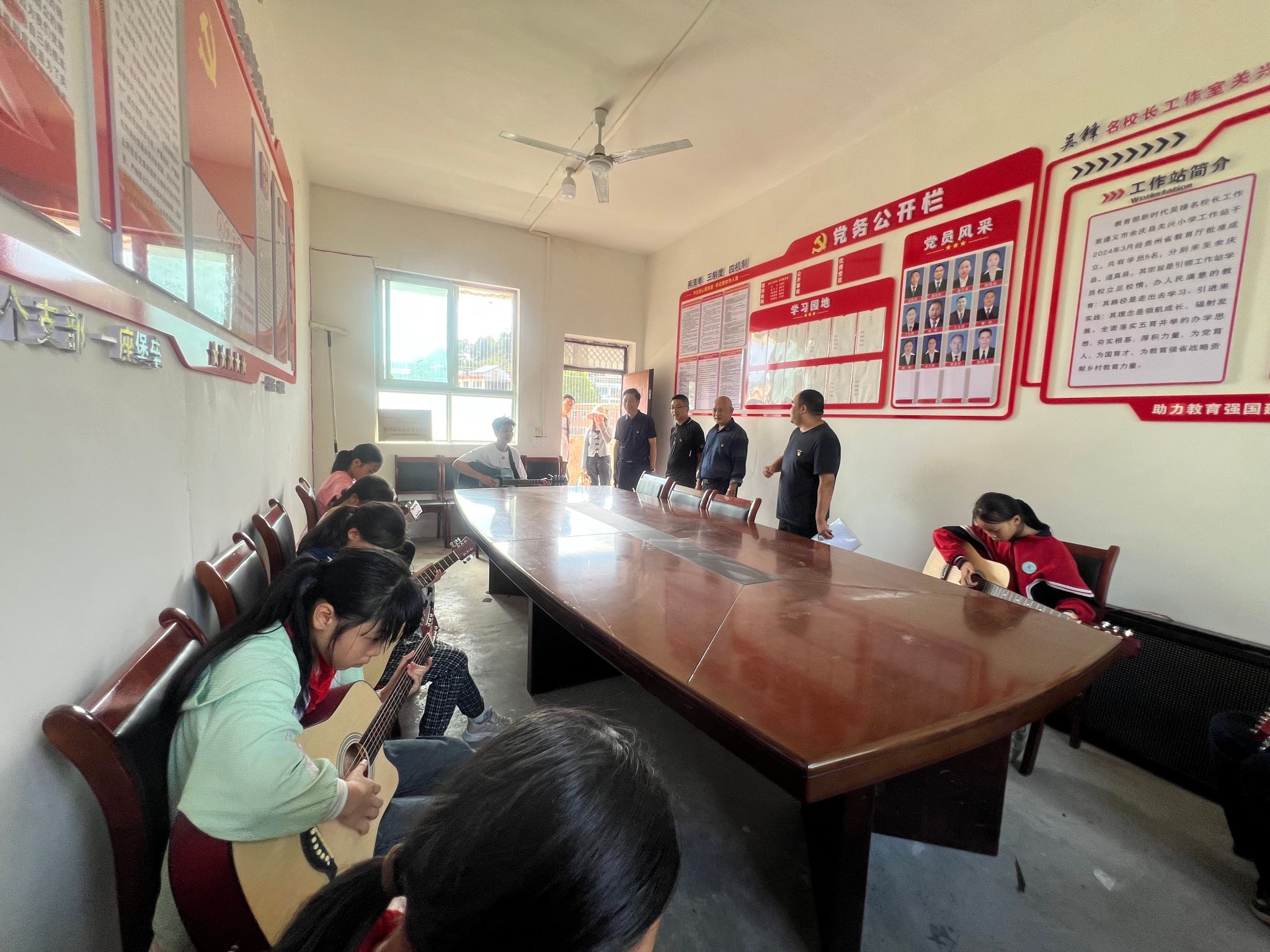 参会人员现场考察了微信买球官方网站协调捐赠的无人机教室和吉他教室。观看了关兴镇中心小学学生的无人机表演和吉他演奏,展示了乡村素质教育的丰硕成果。