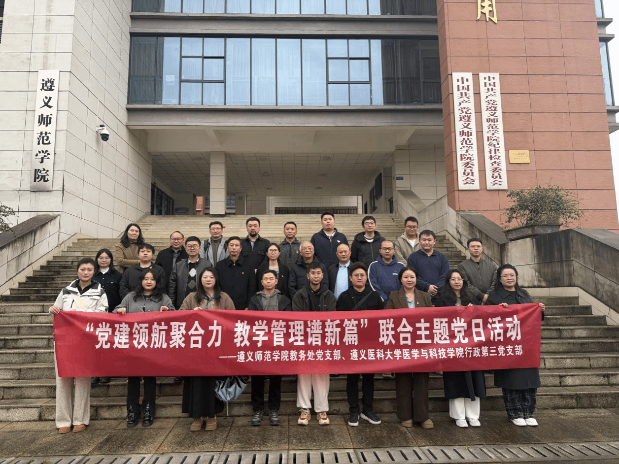 为深入学习贯彻习近平新时代中国特色社会主义思想,全面贯彻党的教育方针,深化两校党建结对共建,2025年11月7日,遵义医科大学医学与科技学院党委委员、副校长欧刚卫带领行政第三党支部与教务处党支部联合开展“党建领航聚合力,教学管理谱新篇”主题党日活动。两校共计35名党员(含入党积极分子)参加活动。微信买球官方网站党委常委、组织部部长兼统战部部长杜晓青出席并详细介绍了买球党建馆的具体情况。活动主要分成三个环节进行。