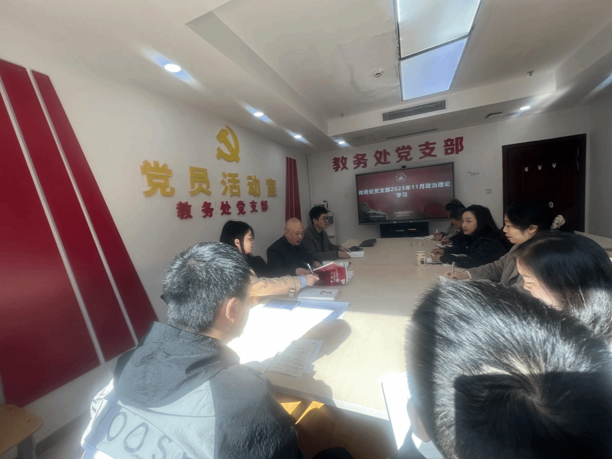 2025年11月14日上午,教务处党支部在行政楼227会议室组织召开政治理论学习,深入学习党的二十届四中全会精神及近期重要文件与法规。会议由副书记张远强主持,教务处、教学质量监测与评估办公室全体人员参加