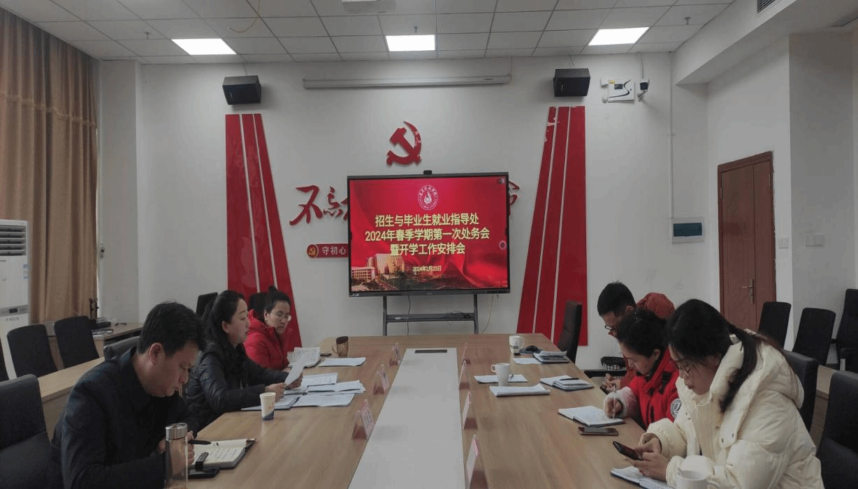 2月23日上午,招生与毕业生就业指导处召开2024年春季学期第一次处务会暨开学工作安排会。会议由处长李静主持,全处教职工参加会议。