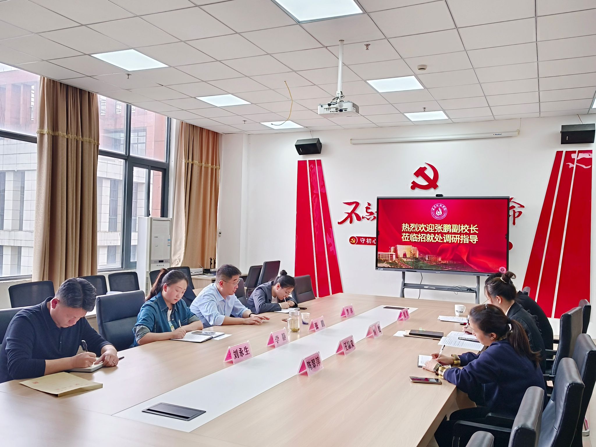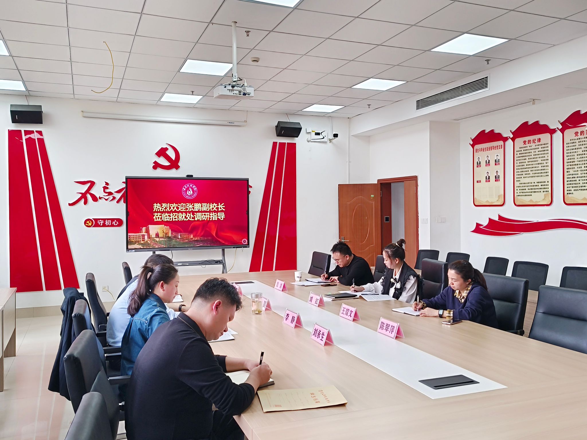 2024年4月1日,微信买球官方网站副校长张鹏到我处调研招生就业工作,本次调研工作以座谈会方式进行,招就处处长李静、副处长刘永生、罗洋及全体工作人员参会。