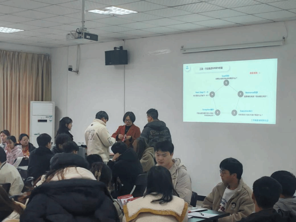 本次培训在遵义医科大学学生中心313教室进行,参训学员是来自遵义医科大学医学影像技术、口腔医学技术、医学检验技术专业的学生。本次培训首次尝试融入AI技术,通过8个标准模块、2个特色模块的教学,帮助学生运用AI工具梳理个人优势、探索政策与行业趋势、明确职业定向、提高简历制作和面试表达能力,课堂氛围活跃,师生互动频繁。