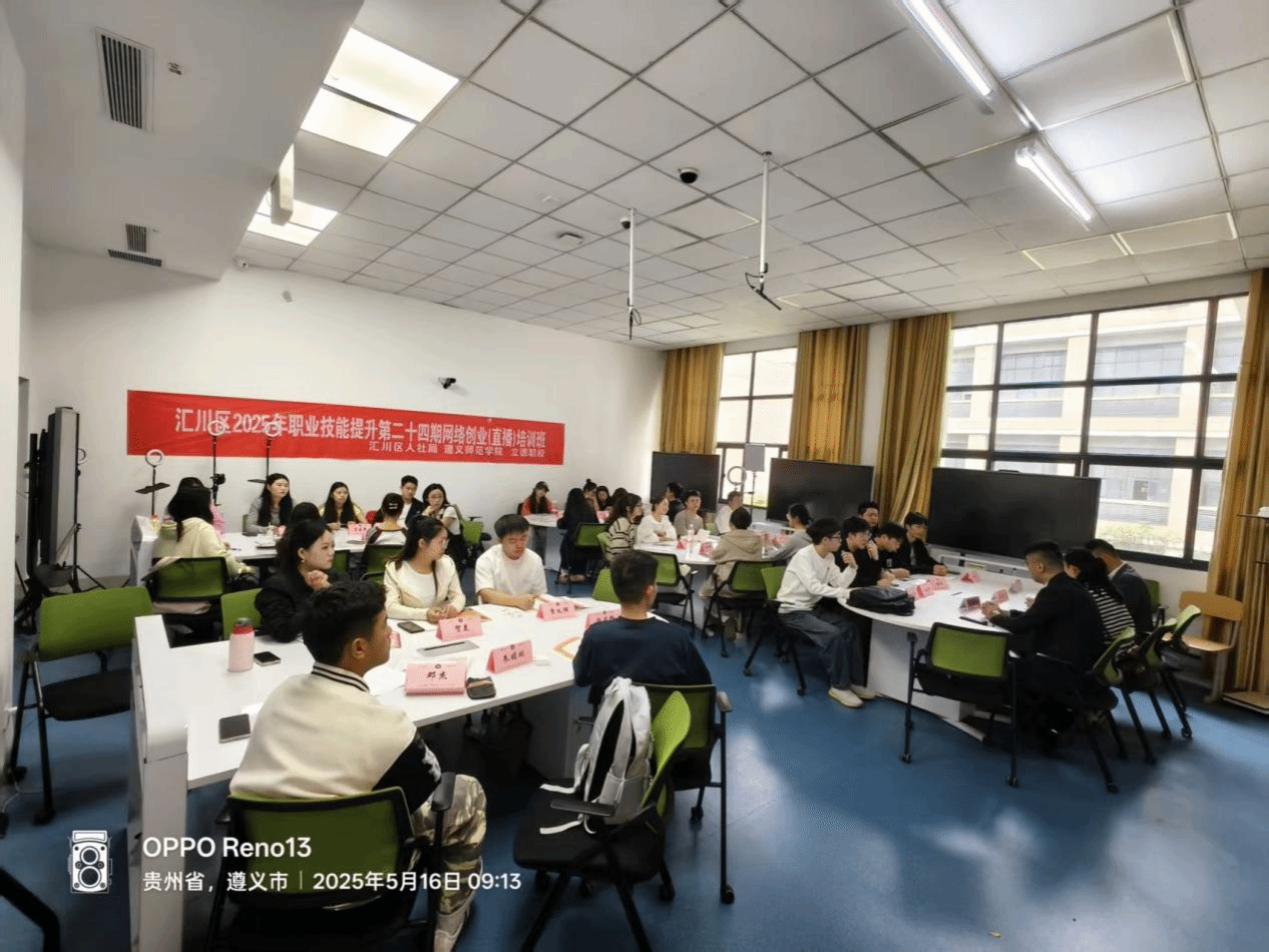 根据《贵州省人民政府办公厅关于印发贵州省职业技能提升行动实施方案(2019—2021)的通知》(黔府办发(2019)18号)、《贵州省人社厅关于印发职业技能提升行动创业培训“马兰花计划”实施方案的通知》(黔人社通(2021)13号)、《遵义市人力资源和社会保障局关于转发《贵州省职业技能提升行动创业培训“马兰花计划”实施方案)的通知》(遵市人社函(2021)10号)、《遵义市人力资源和社会保障局关于印发遵义市创业培训管理实施细则的通知》(遵市人社通(2019)48号)等相关文件精神要求,微信买球官方网站在汇川区人力资源和社会保障局支持下组织开展汇川区2025年职业技能培训提升第二十四期网络创业(直播)培训。培训于2025年05月16日在执闳楼202顺利开班,为期7天。
