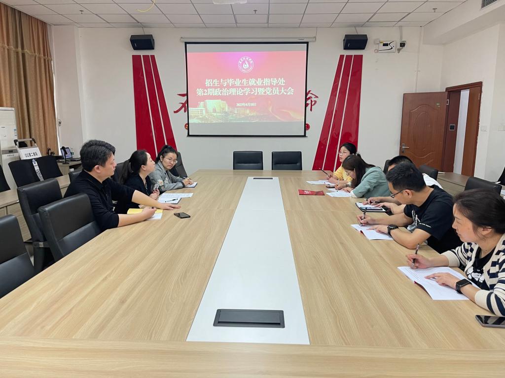 招生与毕业生就业指导处于4月17、18日在学生中心大楼419会议室召开2023年第2次教职工理论学习会暨党员大会。招生与毕业生就业指导处处长李静主持,全体干部教职工参加。