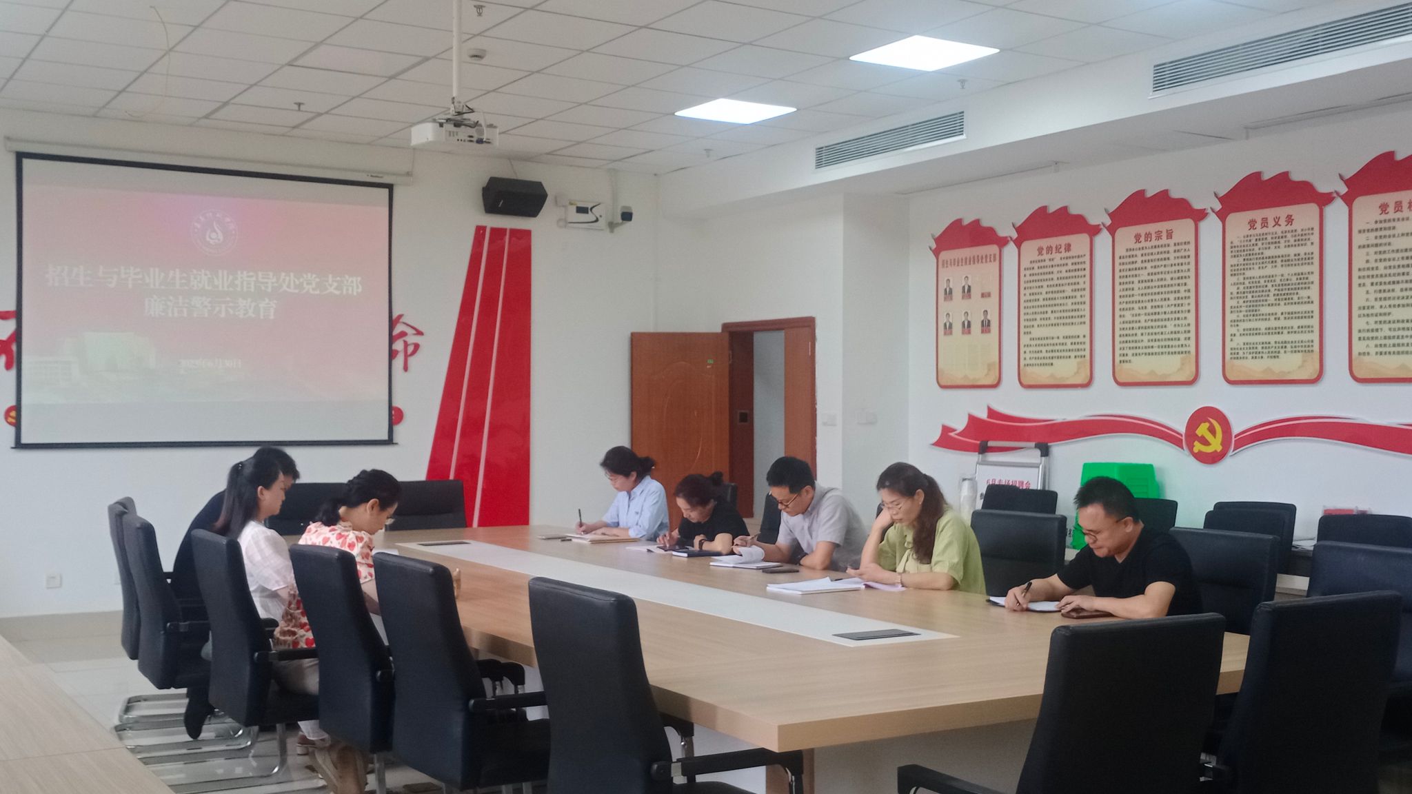 为落实学校党委开展廉洁警示教育相关通知要求,进一步加强招生与毕业生就业指导处党员、教师的廉洁意识和自律能力,推动职业道德的培养和践行,6月30日,招生与毕业生就业指导处组织开展了一场有意义的廉洁警示教育学习活动,本次活动以观看贵州省年轻干部廉洁教育微课程竞赛优秀视频课件为学习形式,取得了良好的效果。