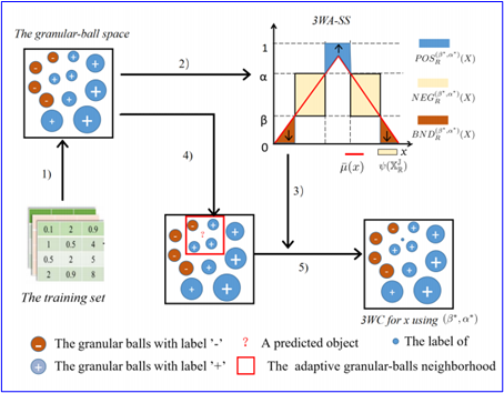 该研究将三支决策理论引入当前人工智能研究热点粒球分类器中,构建了具有强鲁棒性、高效性、有效性的三支粒球分类器,并通过在大量数据集上的实验仿真验证了该模型的可靠性,为今后人工智能和机器学习中分类模型提供了理论基础和指导意义。