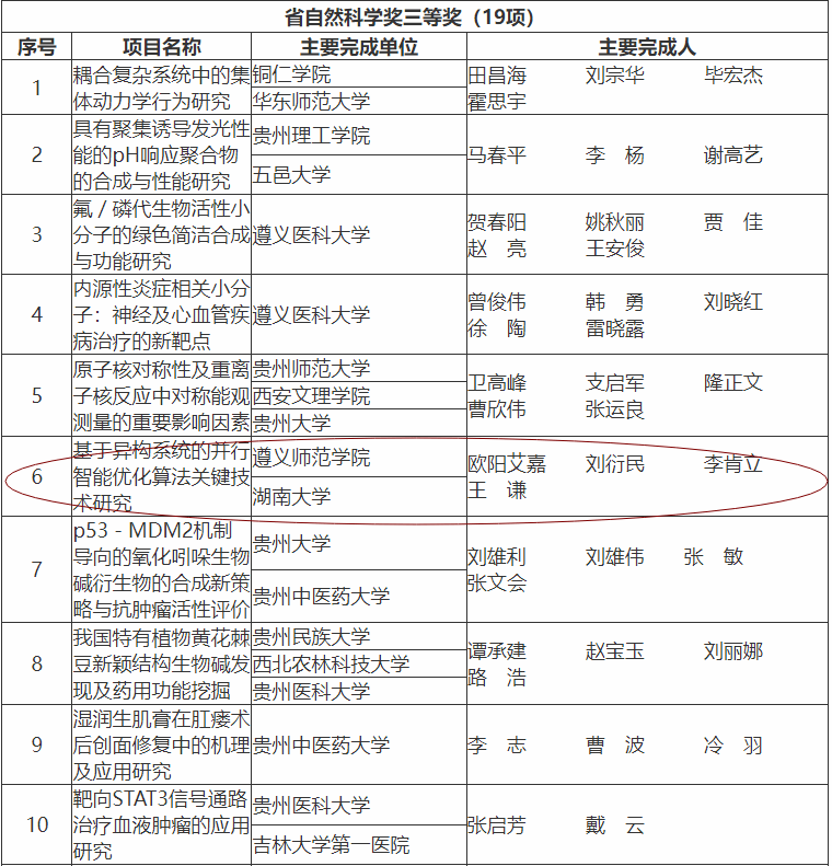 近日,省人民政府公布贵州省科学技术获奖名单,买球教师欧阳艾嘉主持完成的《基于异构系统的并行智能优化算法关键技术研究》项目荣获省科学自然科学奖三等奖。