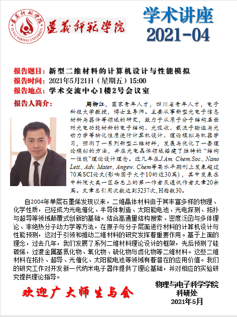 学术讲座2021-04:新型二维材料的计算机设计与性能模拟